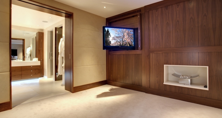 Bespoke graphical user interface on Crestron touchpanels and AV integration with bespoke joinery
